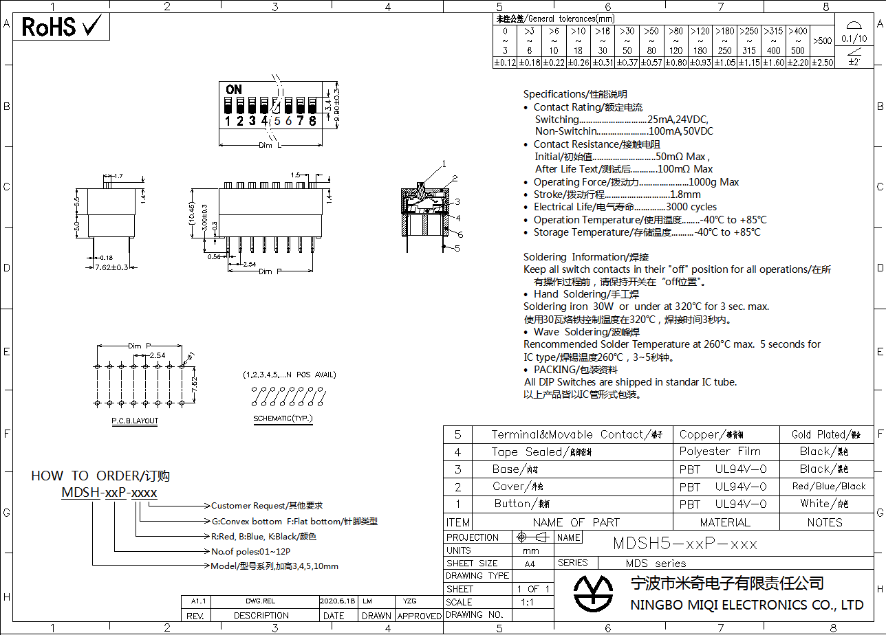 Switching:25mA,24VDC, Non-Switchin:100mA,50VDC