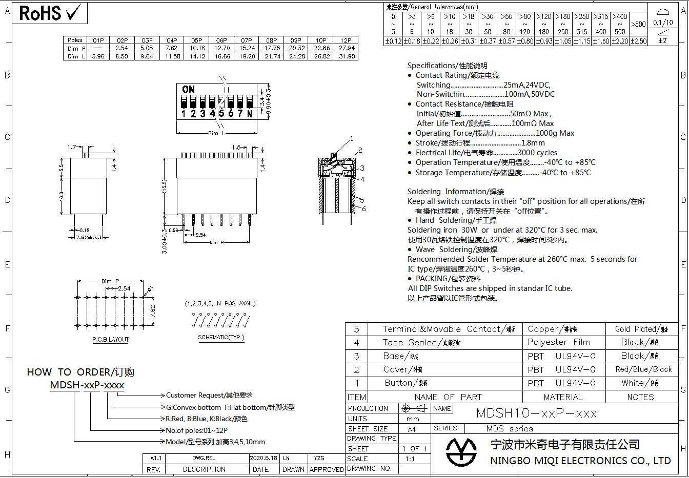 · All DIP Switches are shipped in standar IC tube.