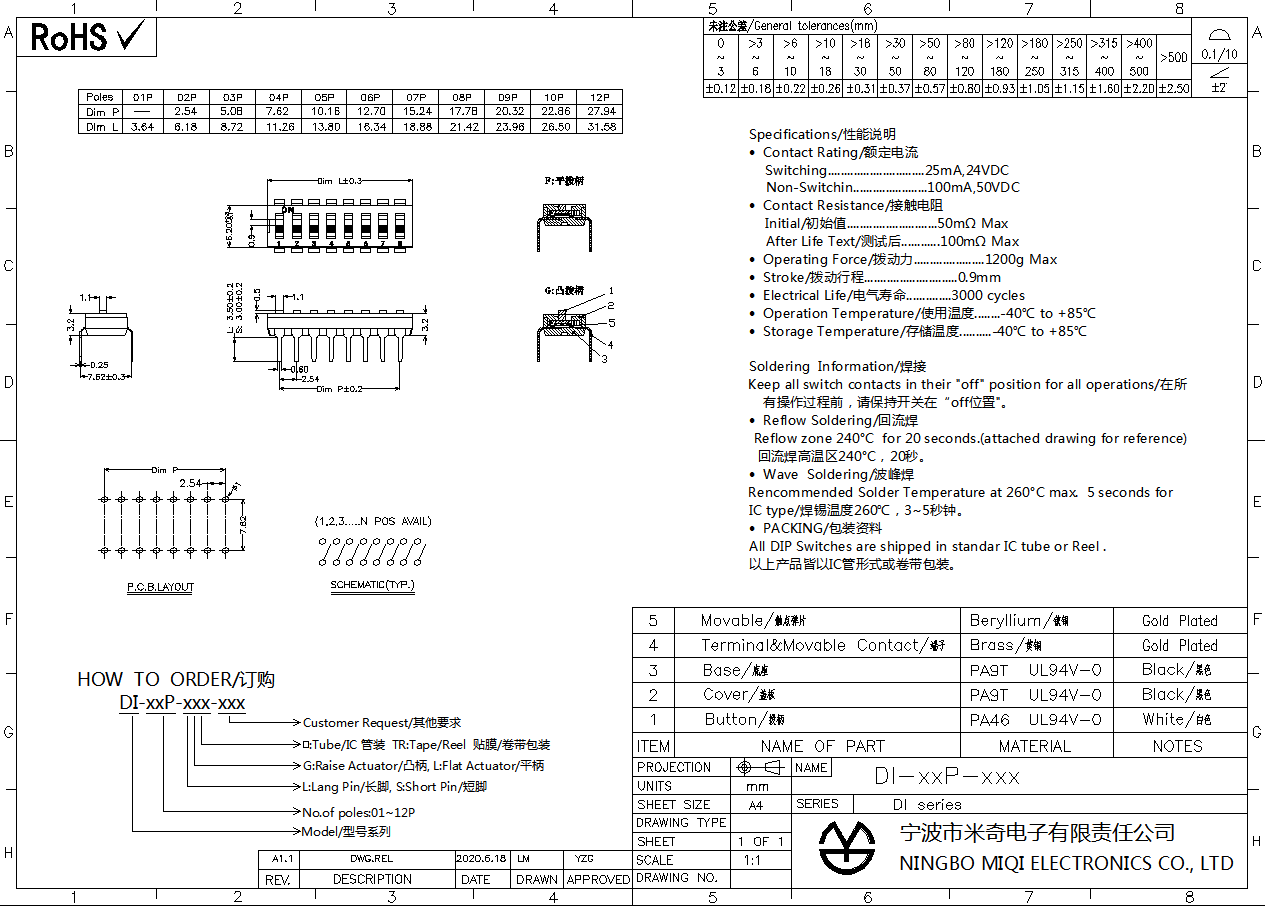 · All DIP Switches are shipped in standar IC tube.