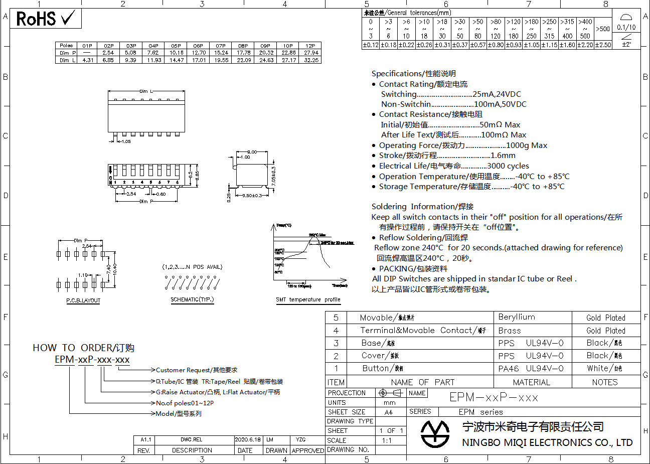 · All DIP Switches are shipped in standar IC tube.