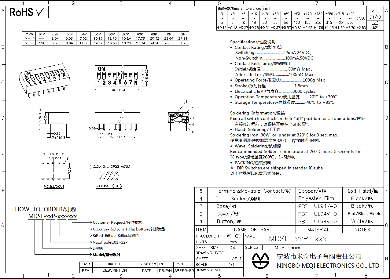 · All DIP Switches are shipped in standar IC tube.
