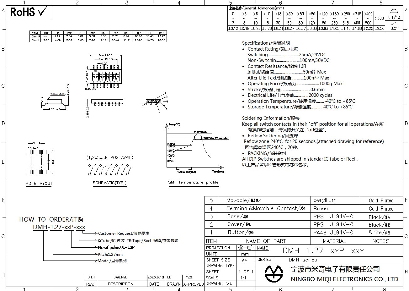 · All DIP Switches are shipped in standar IC tube.